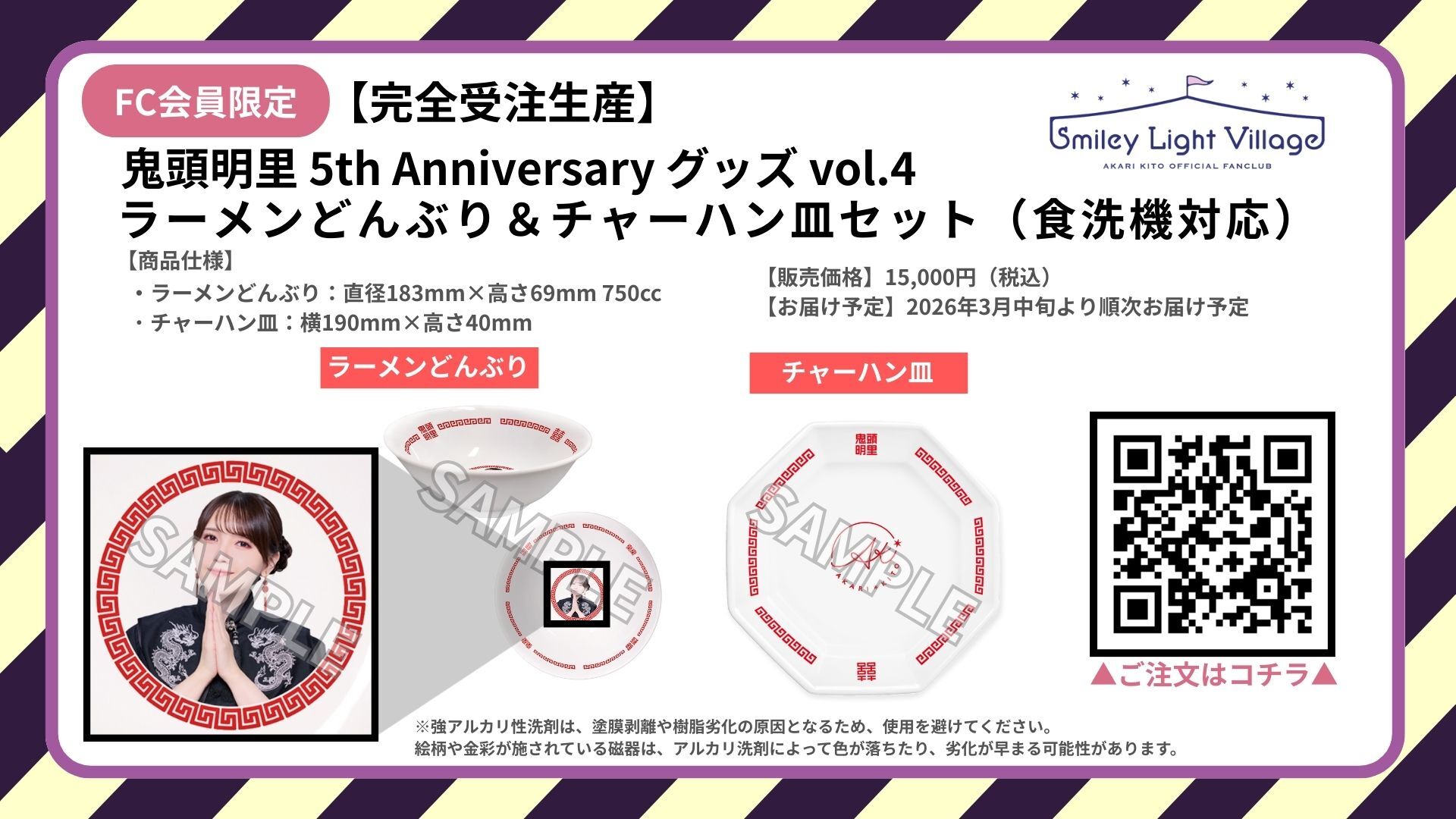 鬼頭明里 5th Anniversaryグッズ 第4弾!ラーメンどんぶり&チャーハン皿セット発売決定!