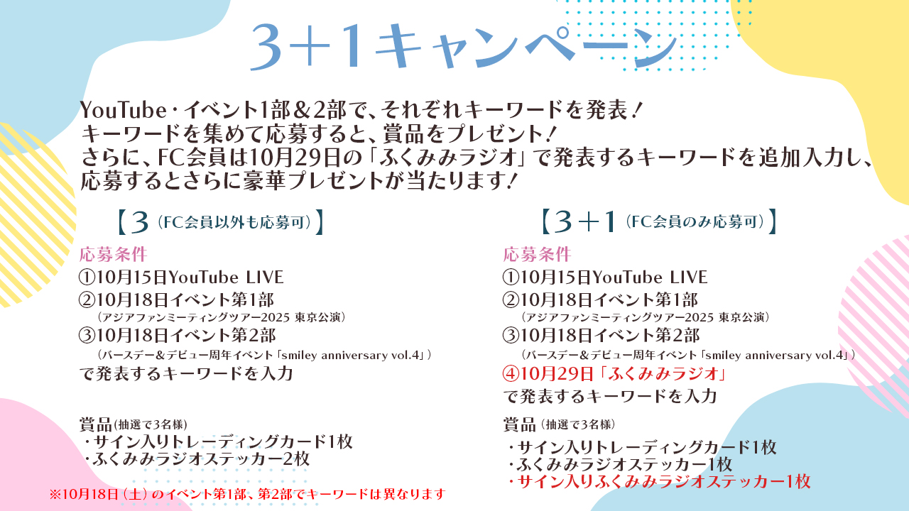アジアファンミーティングツアー2025東京公演と、バースデー&デビュー周年イベント「smiley anniversary vol.4」一般販売(先着)スタート!