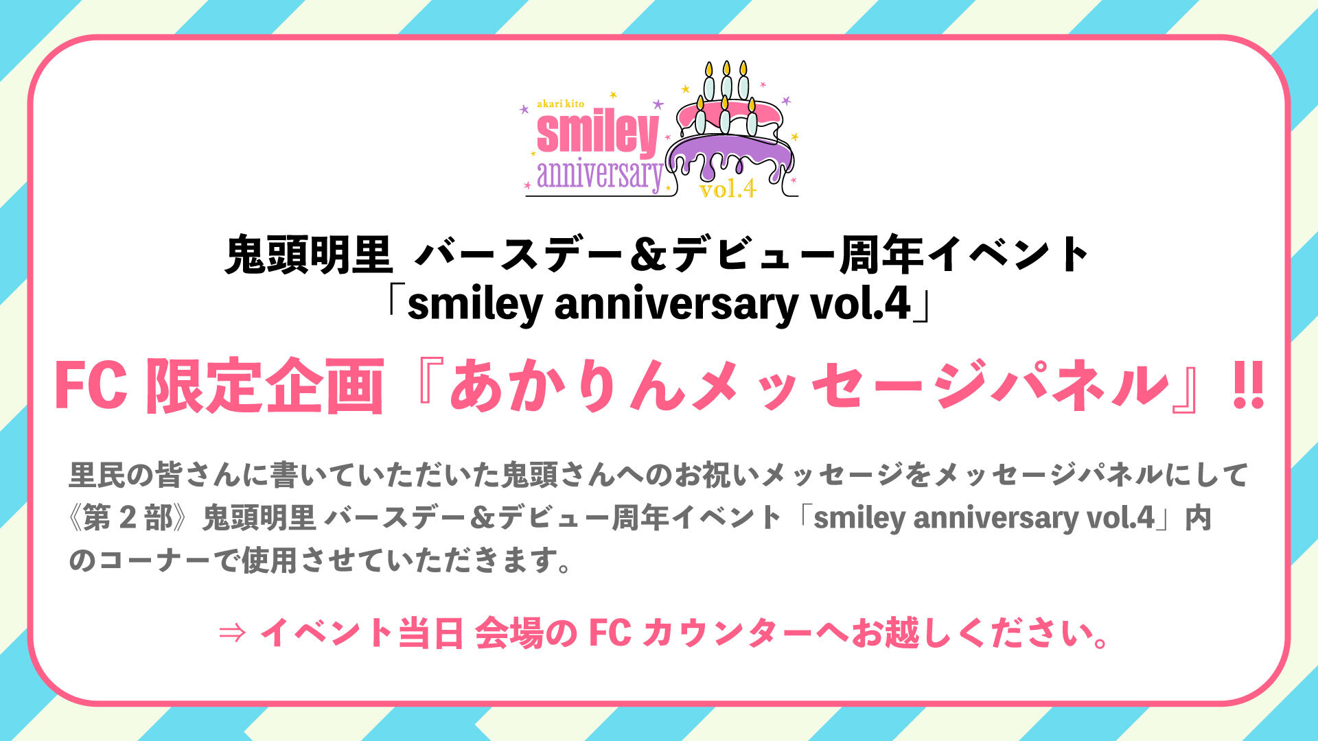 FC限定企画『あかりんへメッセージパネル』を実施いたします!