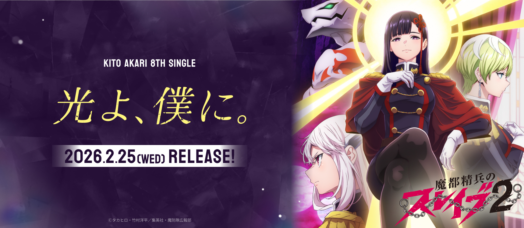 さらに表題曲の「光よ、僕に。」 は、鬼頭明里も羽前京香役で出演する、TVアニメ『魔都精兵のスレイブ2』OP主題歌に決定!