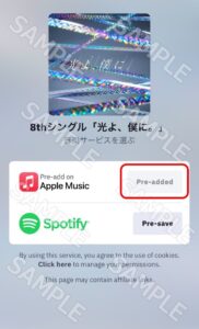 下記URLからお好きなサービスの「Pre-add」または「Pre-save」をタップ